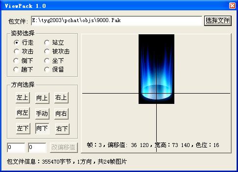 5、运行观察程序,选择生成的文件观察各方向的动作是否正确。并通过手动方式设置图片的偏移值。